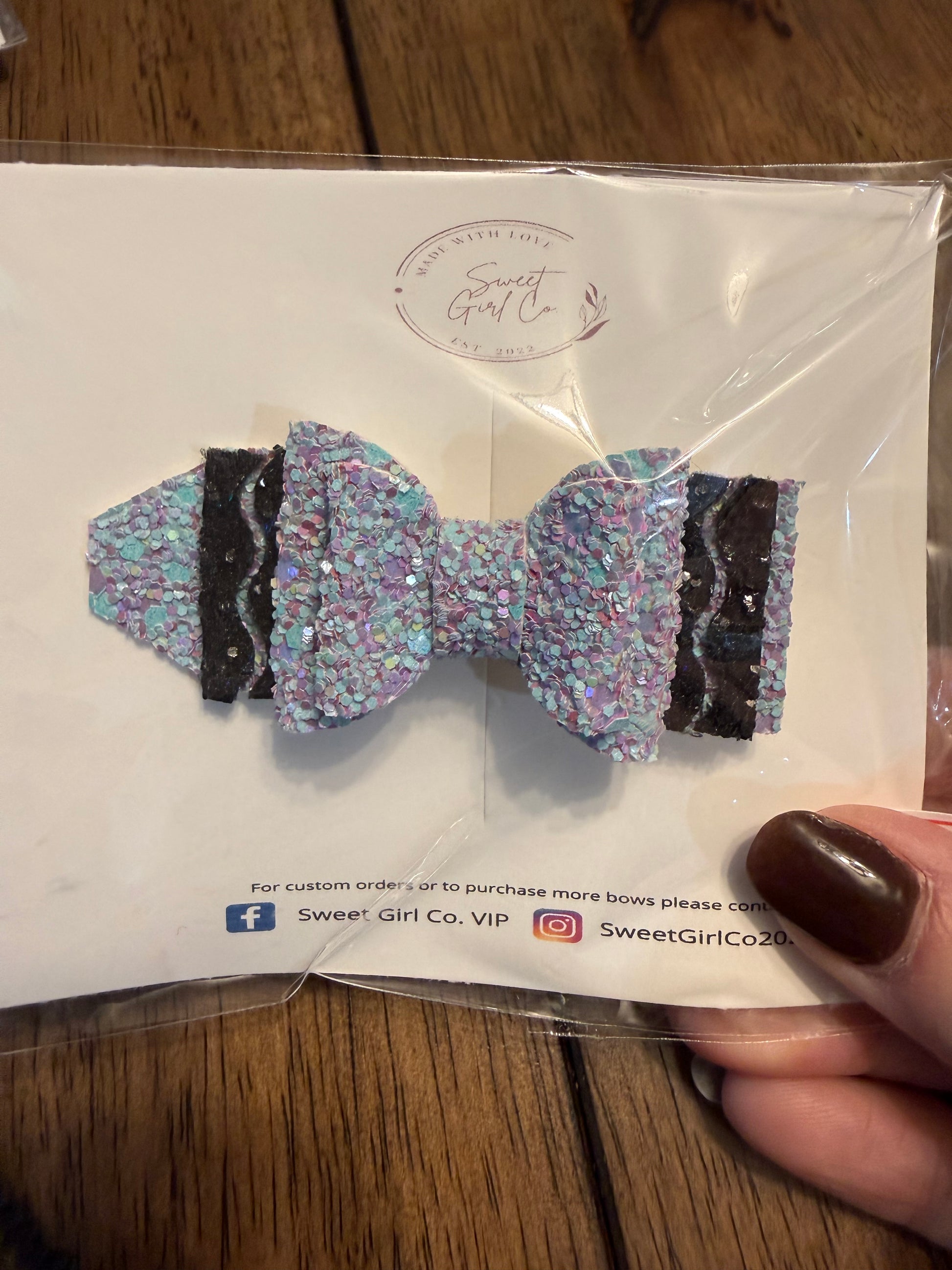 Each bow or accessory is slightly different due to the nature of materials used. Items are not returnable due to pattern or glitter placement.